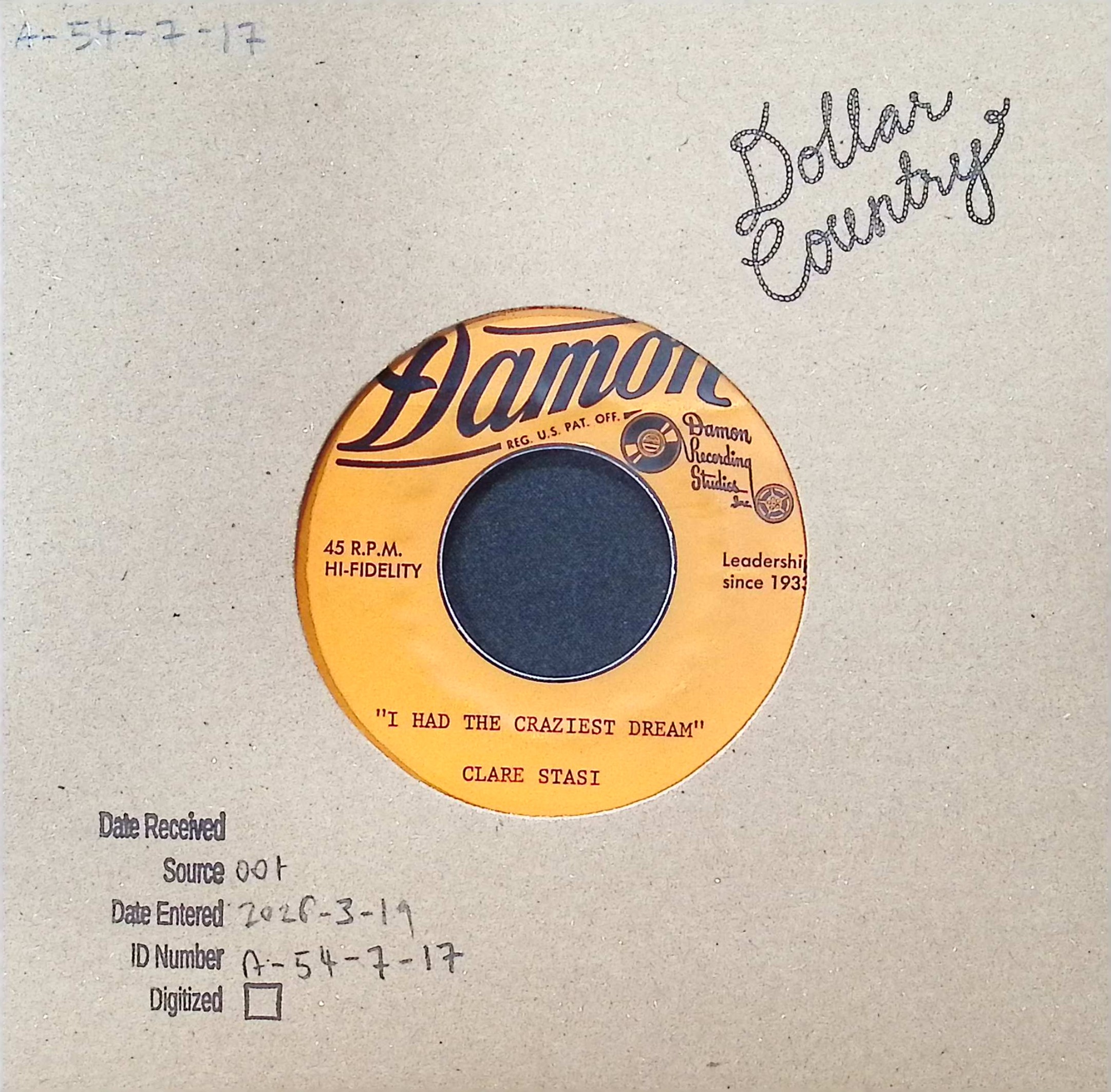 Clare Stasi - I Had The Craziest Dream / You Make Me Feel So Young, accessed March 20, 2026, https://dollarcountry.org/items/show/31658