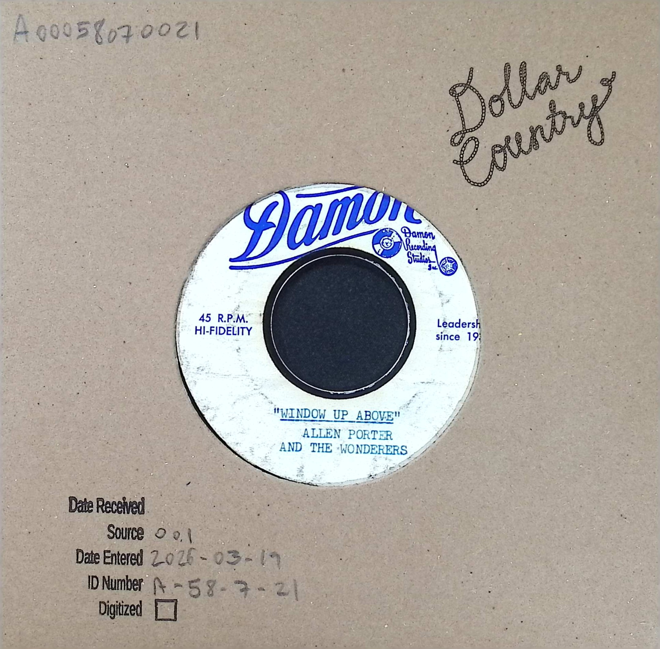 Allen Porter And The Wonderers - Window Up Above / Nadine, accessed March 20, 2026, https://dollarcountry.org/items/show/31663